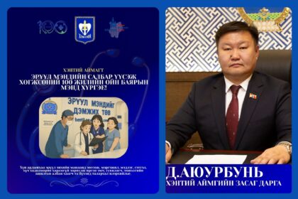 ХАН ХЭНТИЙ УУЛЫН АЙМАГТ ЭРҮҮЛ МЭНДИЙН САЛБАР ҮҮСЭН БАЙГУУЛАГДСАНЫ ТҮҮХТ 100 ЖИЛИЙН ОЙН БАЯР ЭХЭЛЛЭЭ